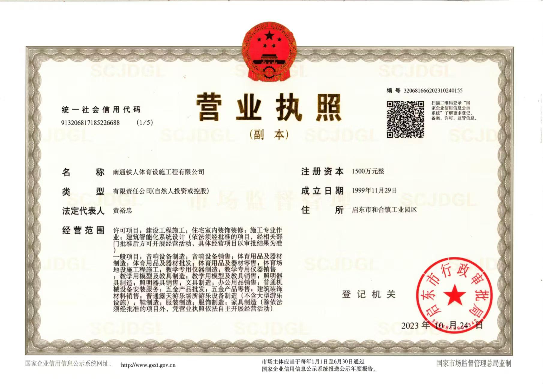 名称:南通铁人体育设施工程有限公司